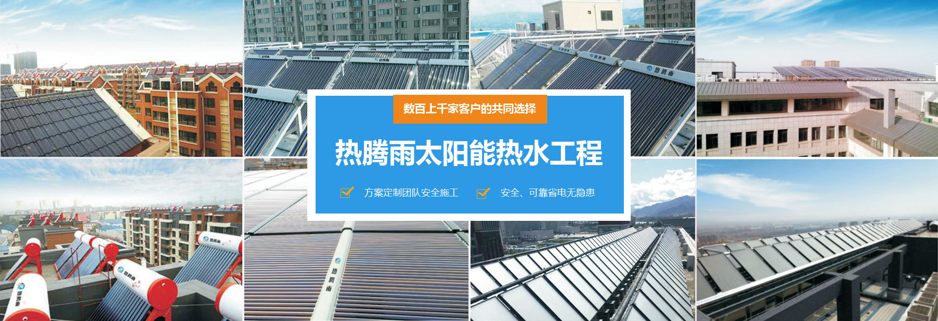 河南熱騰新能源有限公司是一家主要以太陽能熱水器、空氣能熱水器、空氣源采暖熱泵、空氣源熱泵熱水器、烘干熱泵、中央空調(diào)、等熱泵相關(guān)產(chǎn)品的研發(fā)、設(shè)計、銷售、安裝于一體的新能源公司。目前已開發(fā)出包括家用熱泵、商用熱泵和采暖熱泵在內(nèi)的10大類、72個系列、420多個品種規(guī)格的產(chǎn)品,能充分滿足不同消費群體的需求。公司有多年的太陽能集熱器生產(chǎn)和太陽能熱水工程施工經(jīng)驗,并和全國多所相關(guān)高等院校合作研發(fā)新技術(shù),擁有多用途平板式太陽能裝置的制作經(jīng)驗。公司擁有“熱騰雨”注冊商標(biāo)。我公司產(chǎn)品廣泛應(yīng)用于賓館、酒店、洗浴中心、游泳場管、學(xué)校、單位、機關(guān)、部隊等,深得客戶的認(rèn)可。